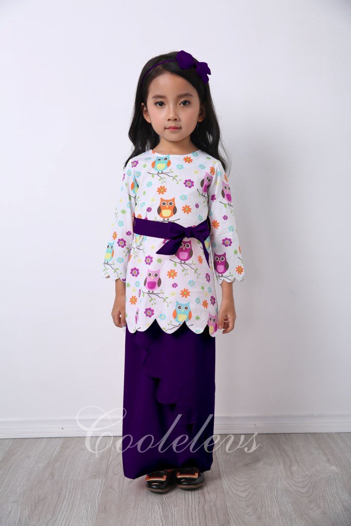 Baju Kurung OWL (COOL ELVES) Top+Skirt+Headband SIZE 1Y (DARKPINK , PURPLE)